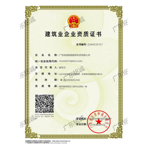 廣東銘誠智能建筑科技有限公司成立于2008年,公司注冊資金為6000萬元,集辦公裝修、酒店裝修、家庭裝修、軟裝裝飾、娛樂場所裝修為一體的裝飾公司,率先提出“創(chuàng)造現(xiàn)代人文空間,挑戰(zhàn)業(yè)界高峰”的雄壯口號,并以此為目標,完成了一大批具有影響力的大型公裝工程:其中包括廣州國際中醫(yī)藥展貿(mào)中心、奧飛澄海音樂廳、澄海區(qū)國家稅務(wù)局、澄海興信小額貸款、澄海潮商村鎮(zhèn)銀行、汕頭龍湖賓館、澄海豪庭大酒店、御園國際飲食城、澄海福晉軒酒家、享樂匯保健有限公司、假日商務(wù)酒店、尚景康園物業(yè)、星輝車模股份有限公司、奧飛動漫有限公司、香港國際玩具、汕頭萬基貿(mào)易有限公司、泰興源實業(yè)有限公司、汕頭皇冠玩具有限公司等;家裝工程包括南澳黃金海岸整幢的精裝房、中信華府、富春華庭、金信鳳凰名城、凱旋花園、中信金城、柏嘉半島、陽光海岸、金葉島等高等住宅。 ? 廣東銘誠智能建筑科技有限公司經(jīng)過十余年的建筑裝飾裝修施工領(lǐng)域項目積淀,于2018年2月取得“建筑裝修裝飾工程專業(yè)承包二級”、“建筑機電安裝工程專業(yè)承包三級”、“建筑工程施工總承包三級”、“施工勞務(wù)不分等級”、“安全生產(chǎn)許可證”等專業(yè)資質(zhì),并于2021年8月建筑裝修資質(zhì)正式升級為“建筑裝修裝飾工程專業(yè)承包一級”。這是對企業(yè)規(guī)模、工程業(yè)績、管理水平、誠信表現(xiàn)的肯定,是企業(yè)實力與能力的展現(xiàn)。 ? 公司每一項工程都始終堅持“精美設(shè)計、精心施工、確保合同承諾;勤奮開拓、追求突出、創(chuàng)造時代精品”的質(zhì)量方針,力爭做一項工程,樹一座豐碑。 ? ?銘誠擁有一支由專業(yè)的營銷精英和客戶顧問組成的營銷隊伍,勤奮、敬業(yè)的每一位銘誠員工將本著“贏在別人休息時”的專業(yè)精神,為客戶提供全程營銷及售后服務(wù),確保客戶的合法利益,提供體貼周到的服務(wù),做到讓顧客滿意。 ? 銘誠擁有一批資老牌室內(nèi)環(huán)境設(shè)計師,以“現(xiàn)代人文空間”為設(shè)計理念,為客戶提供人性化、差異化、智能化的室內(nèi)環(huán)境設(shè)計服務(wù),準確的將人性化特點與室內(nèi)環(huán)境相融合,達到了“現(xiàn)代人文空間”的和諧統(tǒng)一。 ? ? ? ?自主創(chuàng)新、視社會責(zé)任為己任的精神使我們在發(fā)展的道路上屢獲殊榮:不斷提升的銘誠品牌知名度和美譽度,靠的是優(yōu)質(zhì)的產(chǎn)品,靠的是不斷提升的營業(yè)績,靠的是國內(nèi)的核心技術(shù)和誠信的服務(wù)。相信通過銘誠人的努力,銘誠將會不斷以新的姿態(tài)為提升廣大消費者的生活質(zhì)量做好服務(wù),為中國裝飾行業(yè)設(shè)計創(chuàng)新做出突出貢獻。 ? ? “忘掉競爭、共